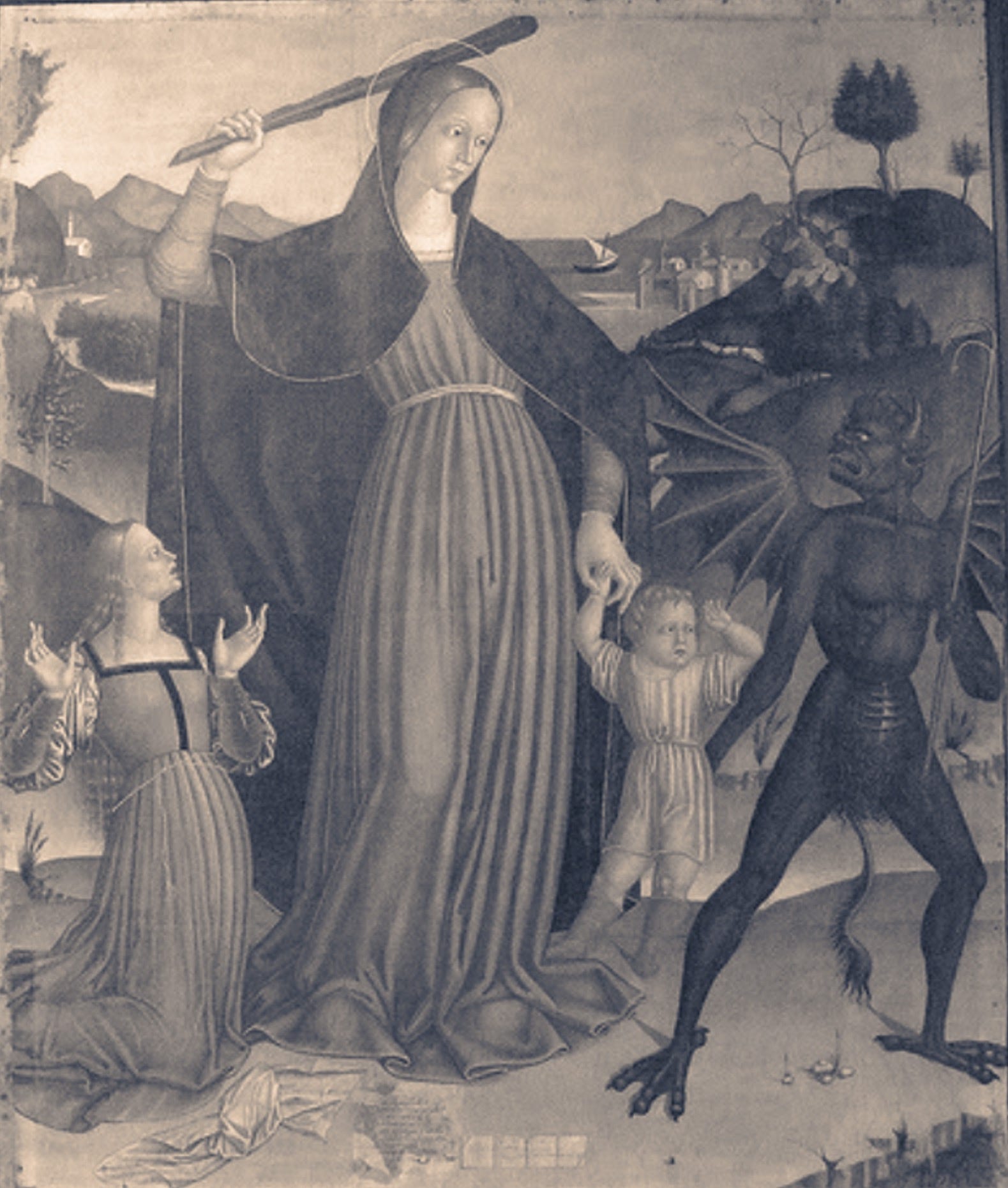 This warfare is specifically about the meaning of maternity. If we return to that “trix” feminine ending, here is a Marian title and picture worth a thousand words: Exterminatrix of Heresies.